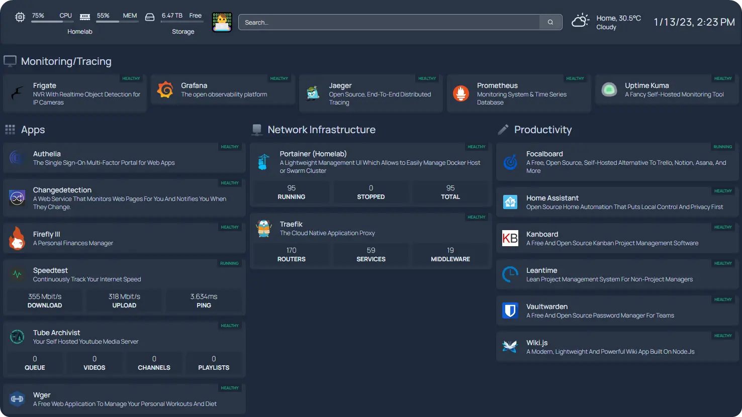 This project aims to create a self-managed Ubuntu Server that can be used as a home server for every self-hosted, open-sourced application. This project used Docker and Docker-Compose. The server will be hosted on a Intel Core i5 - 7400 with 16GB of RAM and 6.5TB of storage. It will be used to host applications listed below: